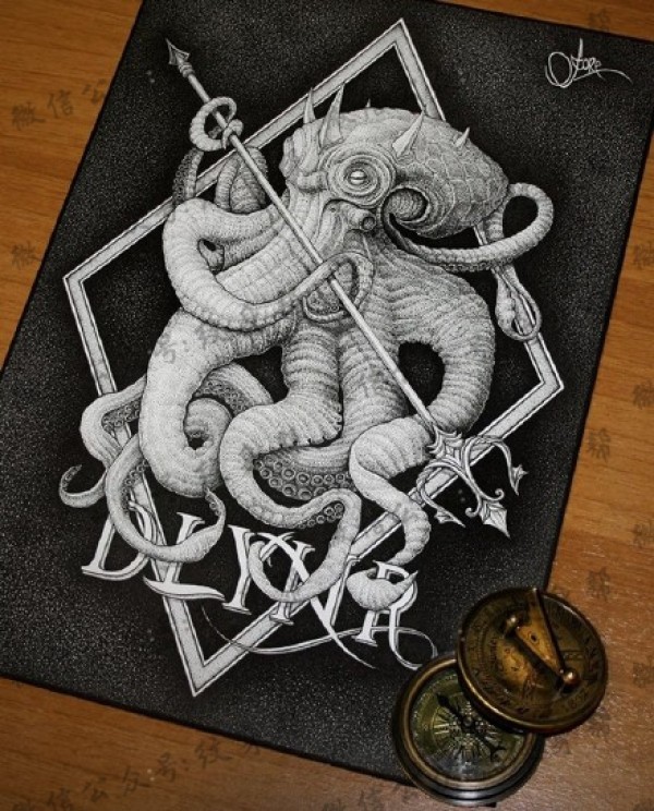章鱼纹身手稿_21张纹身章鱼手稿图案素材