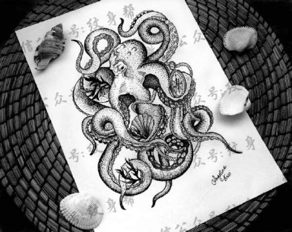 章鱼纹身手稿_21张纹身章鱼手稿图案素材
