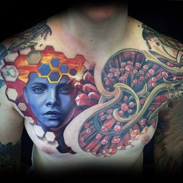 9张男性胸部逼真的3d立体个性纹身图案