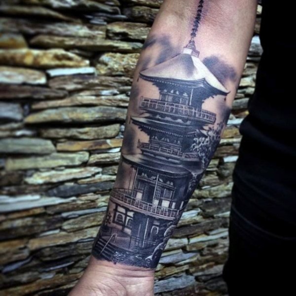 古塔纹身--9张中国风古代塔楼建筑纹身图案作品