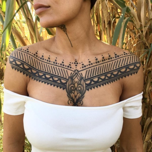 锁骨简约纹身_9张锁骨上的小清新简约黑灰纹身作品图案
