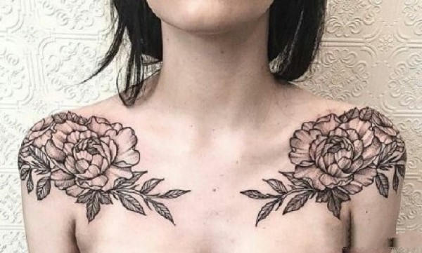 女生肩花纹身_15张女性双肩对称的肩花纹身图案作品图片