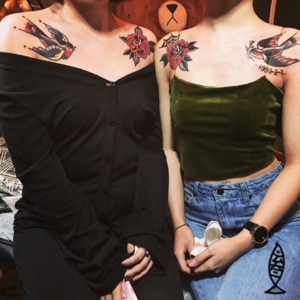 女生肩花纹身_15张女性双肩对称的肩花纹身图案作品图片