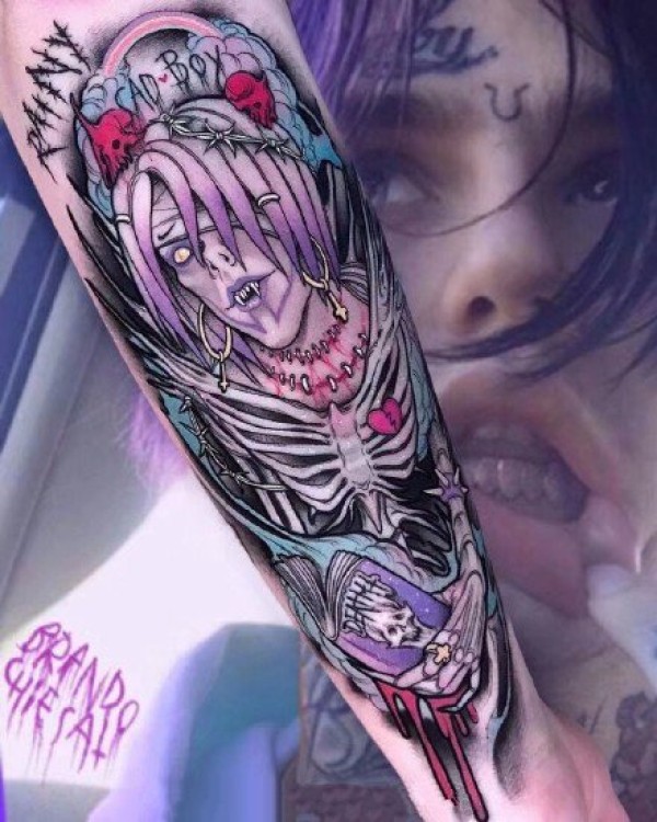 彩色手臂图案-一套分红色主题的彩色纹身图片