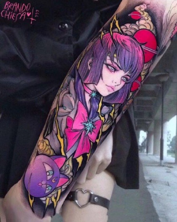 彩色手臂图案-一套分红色主题的彩色纹身图片