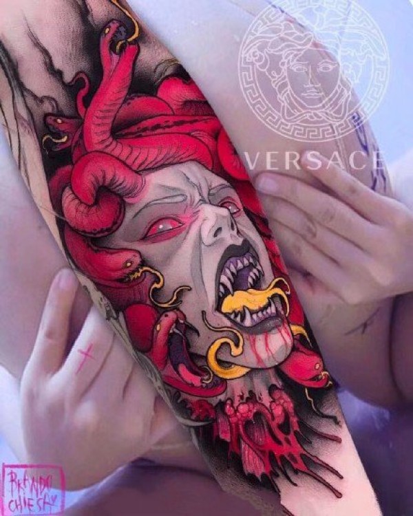 彩色手臂图案-一套分红色主题的彩色纹身图片