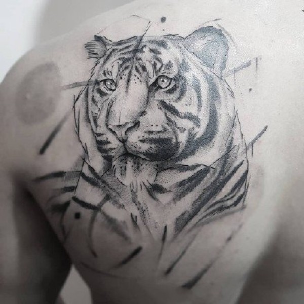 霸气半胛老虎纹身_动物纹身图案大全_纹身图吧