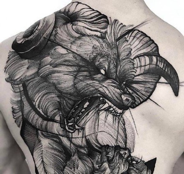 点刺纹身图案-酷炫的人物和动物的点刺纹身图片