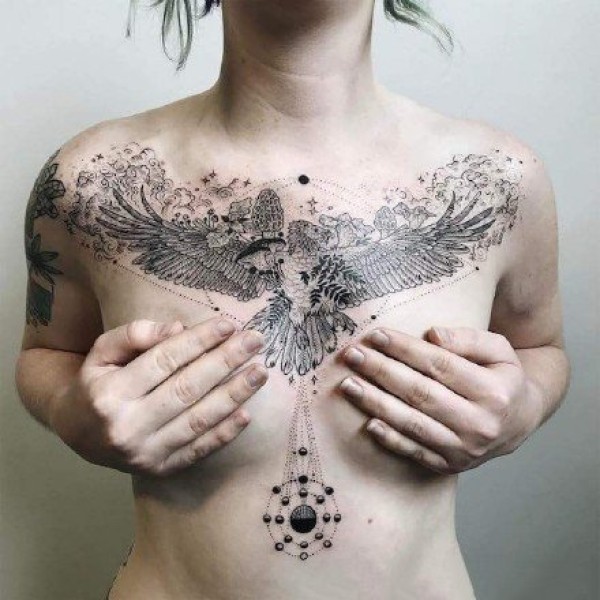 女性大花胸纹身_43张霸气漂亮的女性大花胸纹身图案作品