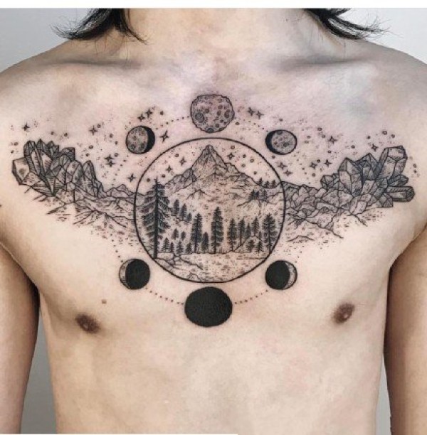 花胸纹身--一组男性霸气的大花胸纹身图案作品欣赏