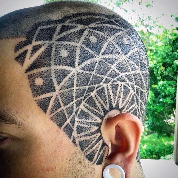 男士头部纹身--10张男性个性的头部黑色纹身图案