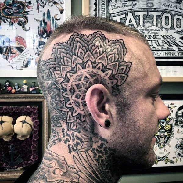 男士头部纹身--10张男性个性的头部黑色纹身图案