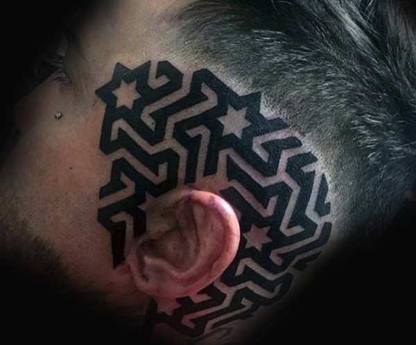 头部纹身图案 个性十足的男生头部纹身图案