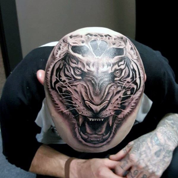 男士头部纹身--10张男性个性的头部黑色纹身图案