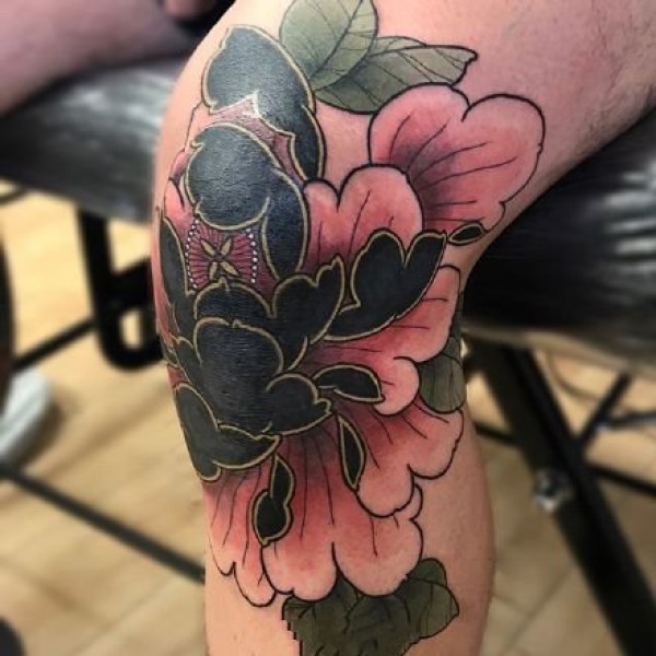 传统花卉纹身--一组传统类型牡丹等花朵纹身图案图片