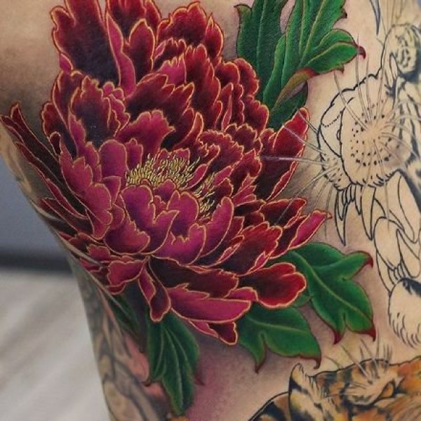 传统花卉纹身--一组传统类型牡丹等花朵纹身图案图片