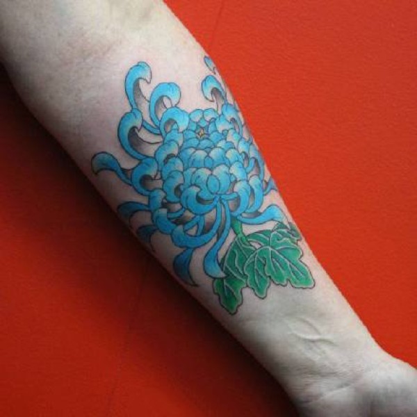 纹在手臂胳膊上的黑灰素花花卉纹身图案欣赏