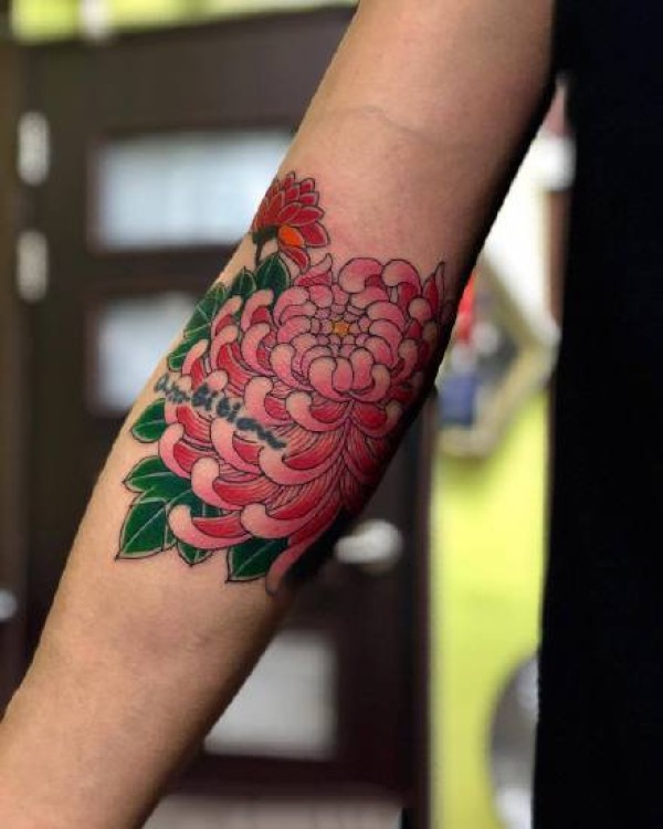 纹在手臂胳膊上的黑灰素花花卉纹身图案欣赏