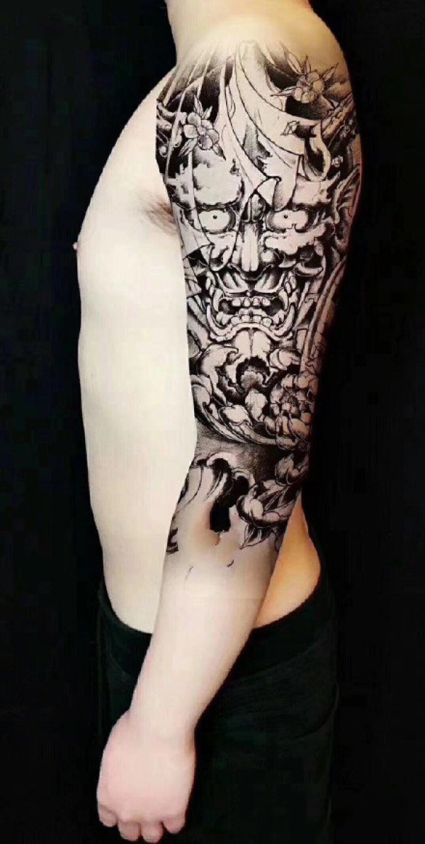 欧美花臂纹身_22张霸气黑灰欧美大黑花臂纹身图案作品图片