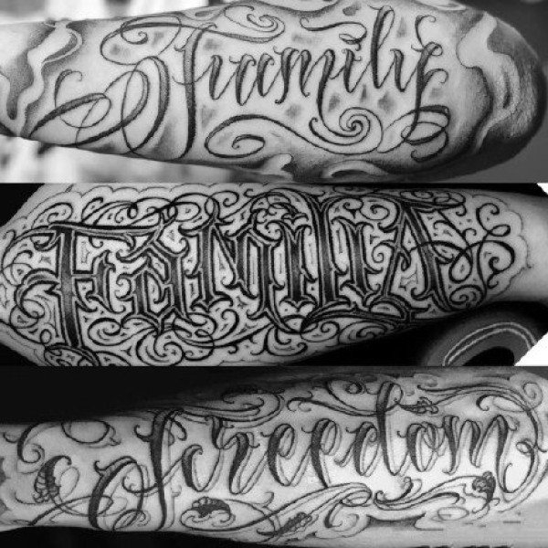 9张胳膊上很有个性的黑色英文花体字纹身图案