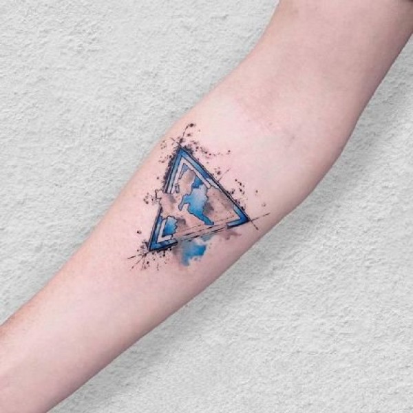 水彩三角形几何风格的纹身图案作品欣赏