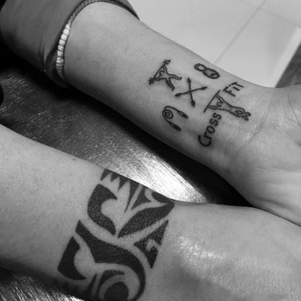 健身相关的黑灰健身器材纹身图案作品图片10张