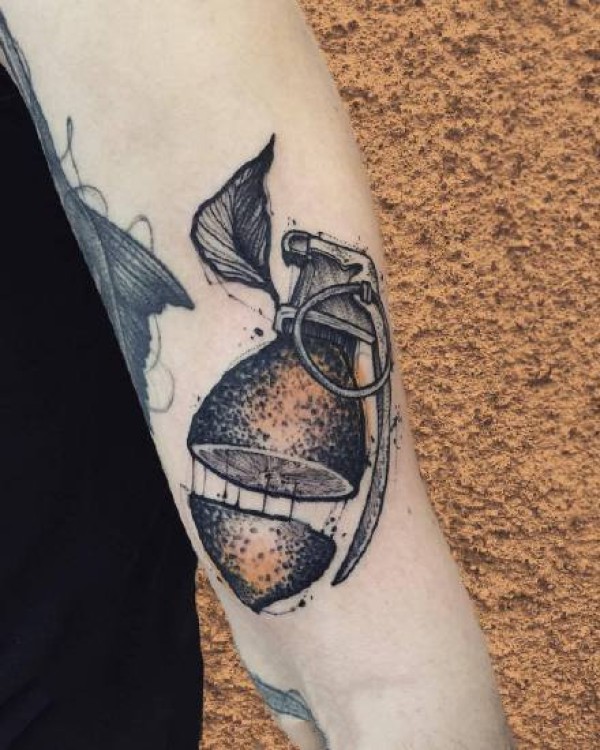 心脏纹身图案 女生手臂上黑灰纹身心脏纹身图案