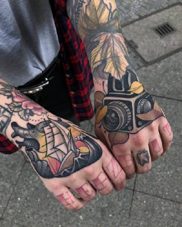 手背oldschool图案_15张手背上的oldschool纹身图案作品
