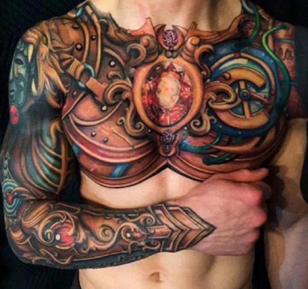 花胸纹身--一组男性霸气的大花胸纹身图案作品欣赏