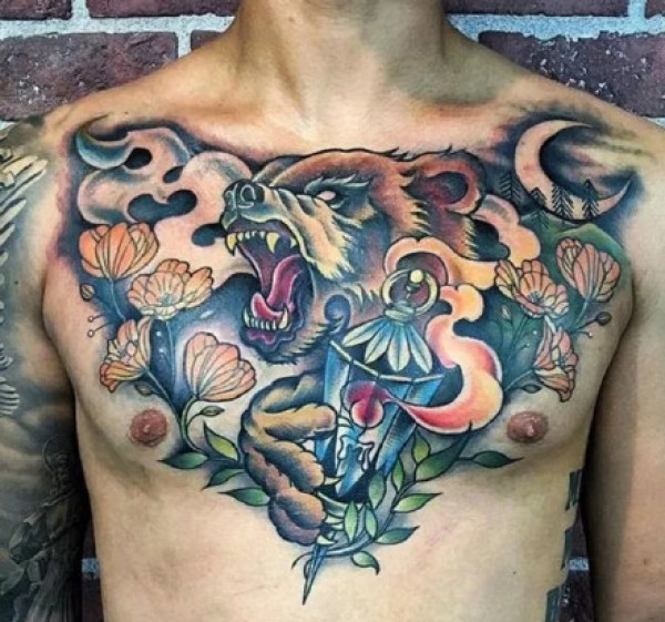 花胸纹身--一组男性霸气的大花胸纹身图案作品欣赏