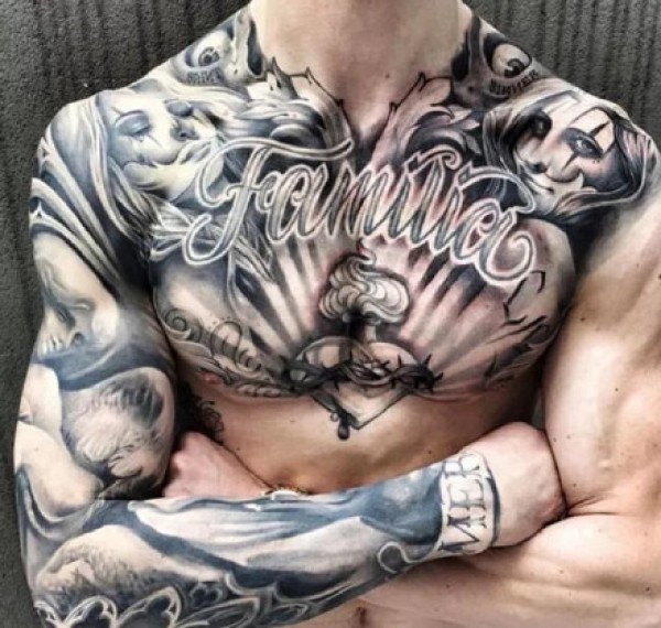 花胸纹身--一组男性霸气的大花胸纹身图案作品欣赏