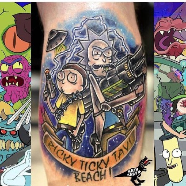 9张美国卡通动画rick and morty的彩色卡通纹身图案