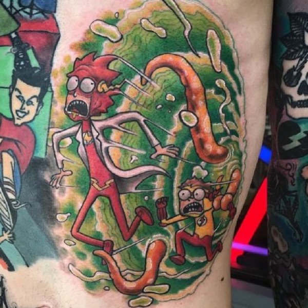 9张美国卡通动画rick and morty的彩色卡通纹身图案