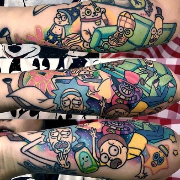 9张美国卡通动画rick and morty的彩色卡通纹身图案