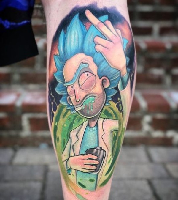 9张美国卡通动画rick and morty的彩色卡通纹身图案