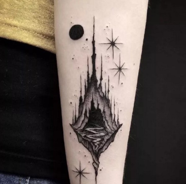 9张纯黑色胳膊上的个性星球主题的纹身图片