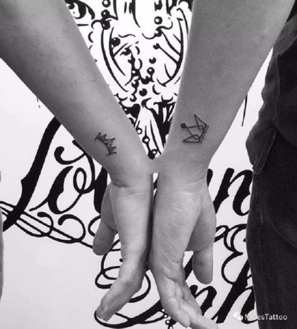 适合情侣的一组成对的皇冠纹身作品