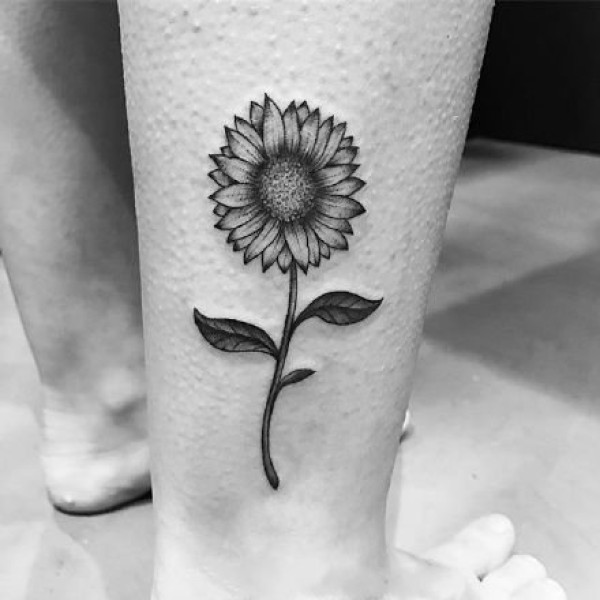 小腿后侧脚踝处的黑色漂亮纹身图案作品欣赏