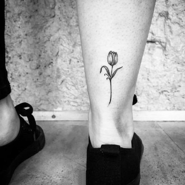 小腿后侧脚踝处的黑色漂亮纹身图案作品欣赏