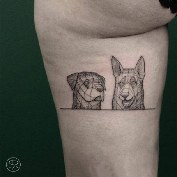 几张黑灰点刺动物几何纹身图案作品