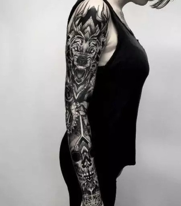 9张很酷的女士花臂纹身图片图案欣赏
