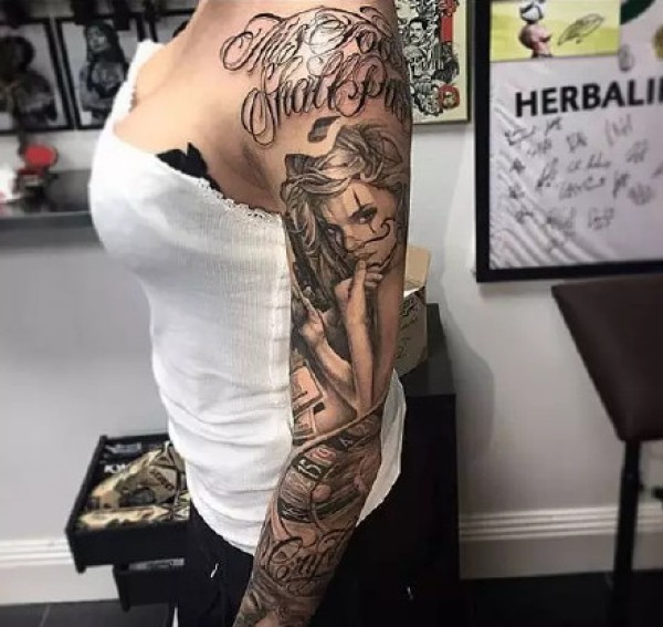 欧美花臂纹身_22张霸气黑灰欧美大黑花臂纹身图案作品图片