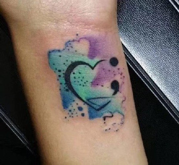 泼墨水彩色的心形图案纹身作品