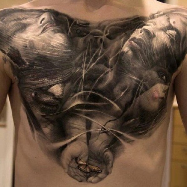 花胸纹身--一组男性霸气的大花胸纹身图案作品欣赏