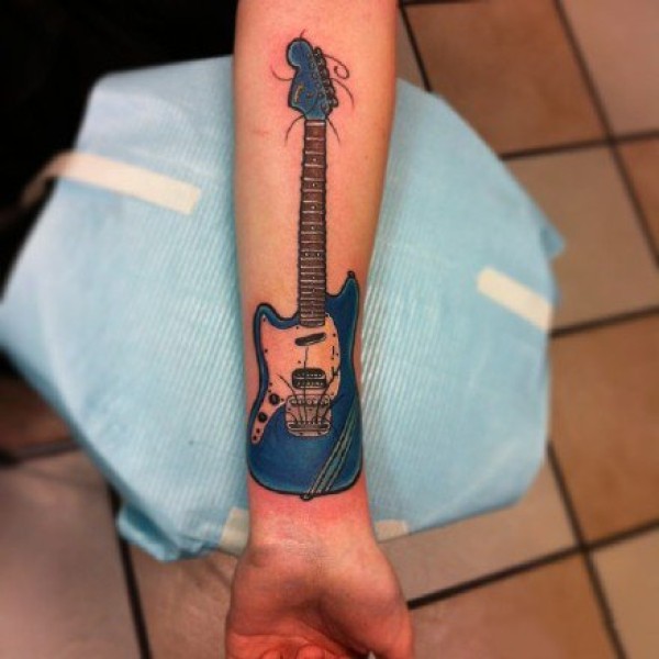 电吉他纹身 女生手臂上萨克斯和吉他纹身图片