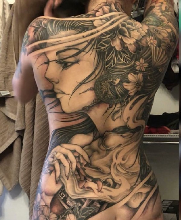 女性大满背纹身--9张女生霸气的大满背纹身作品图案欣赏