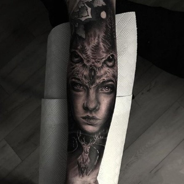 欧美暗黑风格的大黑灰写实纹身图案作品