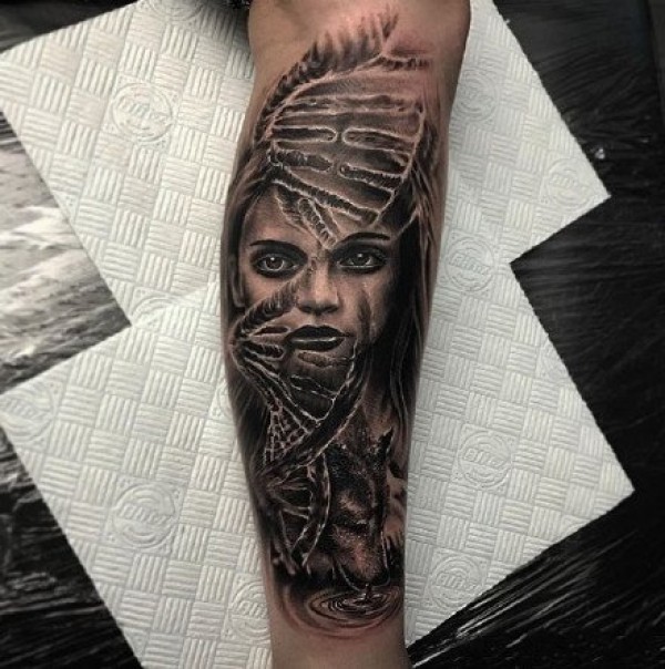 欧美暗黑风格的大黑灰写实纹身图案作品