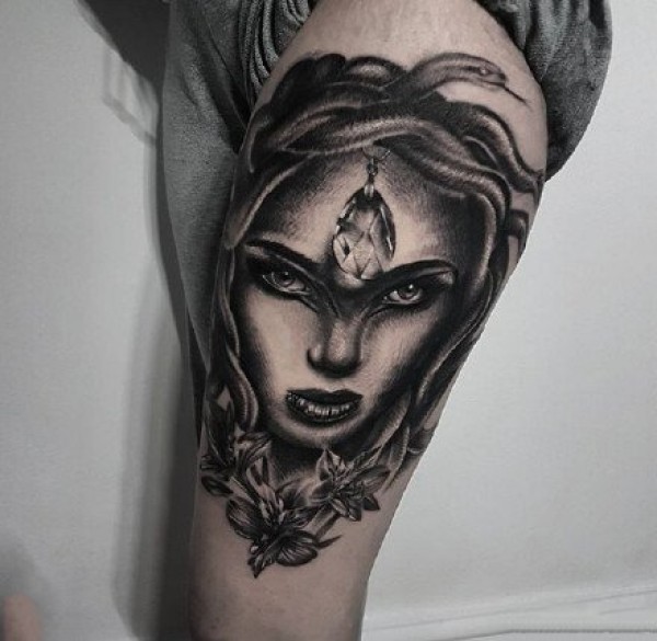欧美暗黑风格的大黑灰写实纹身图案作品