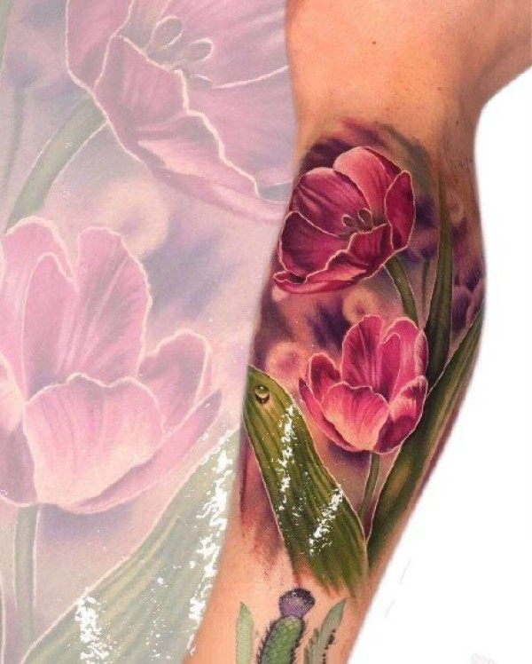 逼真的超现实主义花纹身图案来自纹身师莫拉莱斯